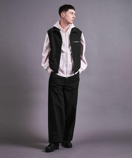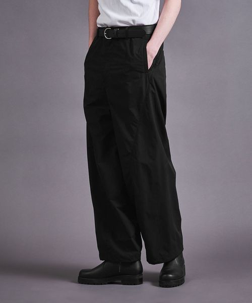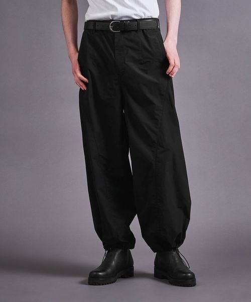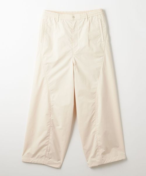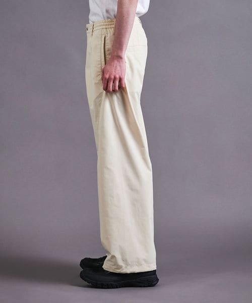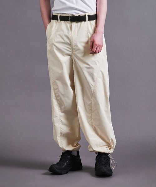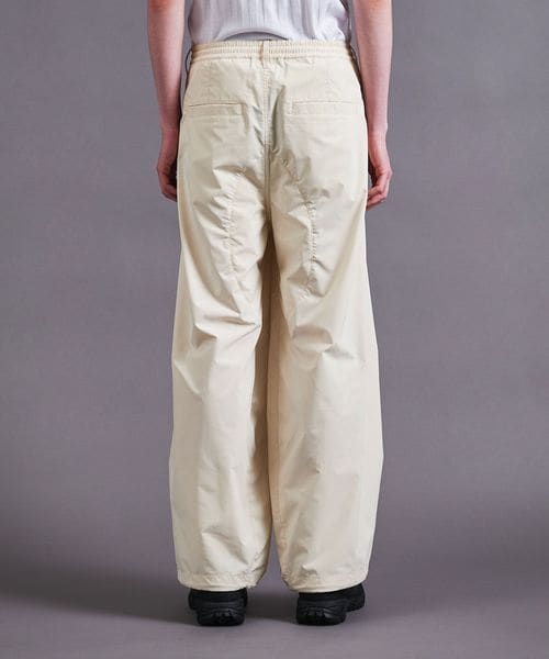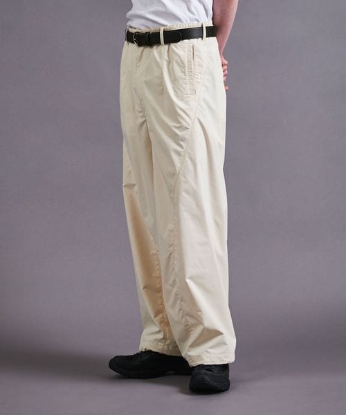 撥水機能付きダブルクロス生地を使用した脇の切替ラインが特徴的なバギーパンツ。