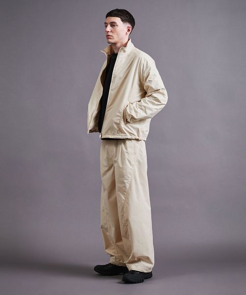 横ストレッチのスポーティ過ぎない合繊生地を使用しておりタウンユースなカジュアルアイテムにも馴染みの良い素材です。