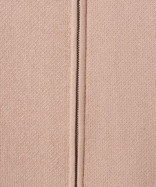 光沢感とドライタッチが特徴的なアクリルとポリエステルの混紡糸を使用したジップジャケット。