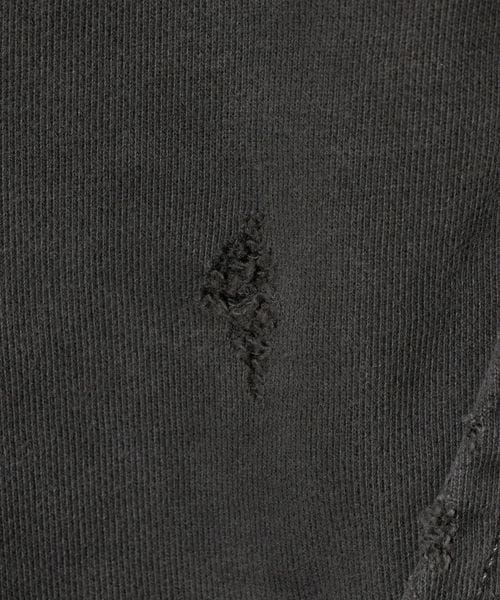 全体的にダメージ加工を施し、ピグメント加工で染めています。