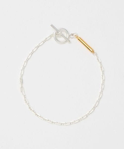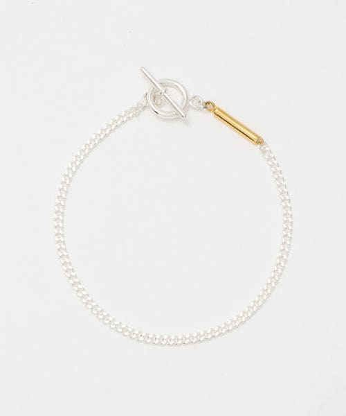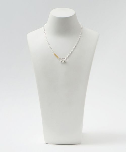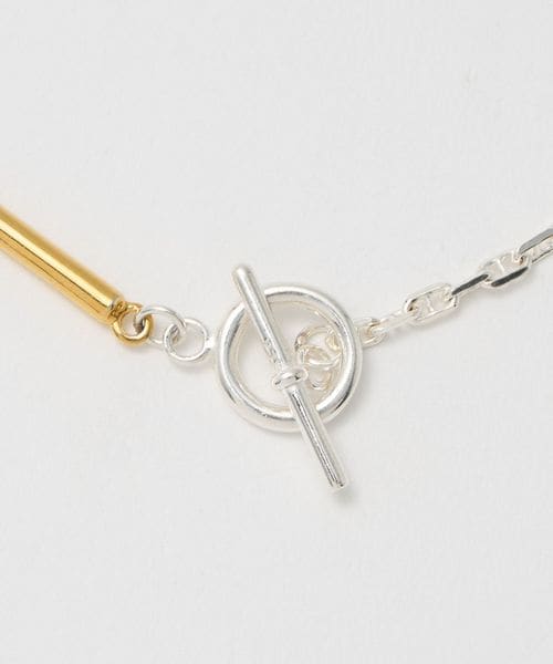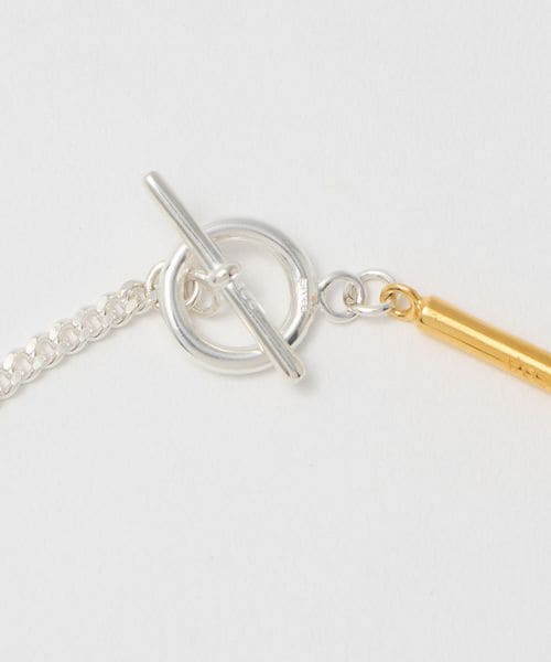 2つのチェーンをミックスさせるとネックレスに、外して使うと2連のブレスレットになります。