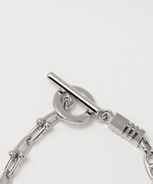 異なるチェーンをミックスさせたブレスレット。