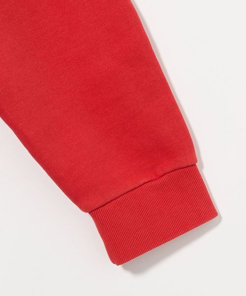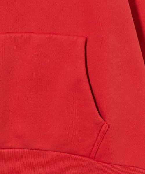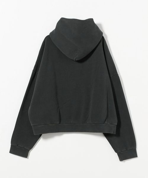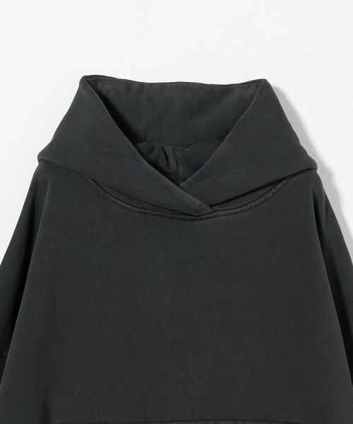 エンザイムウォッシュで生地に退色感を出したプルオーバーフーディー。