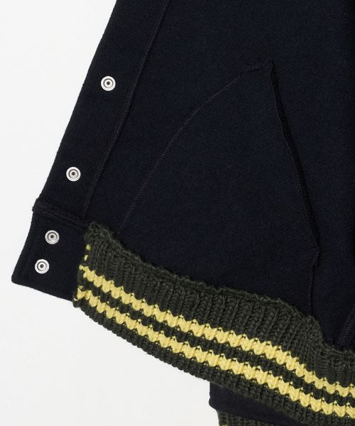 1940〜50年代のカレッジスタイルを踏襲しつつ、当時の学生が自ら毛糸を編み、オリジナルのリブへ付け替えたという設定でデザインしています。
