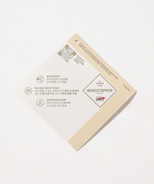 表地には30デニールのGORE-TEX WINDSTOPPER PRODUCTSの2層構造を使用。