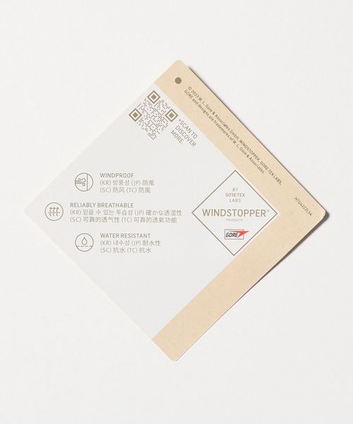 裏地にはGORE-TEX WINDSTOPPER 2層構造を使用し、風の侵入を軽減しています。