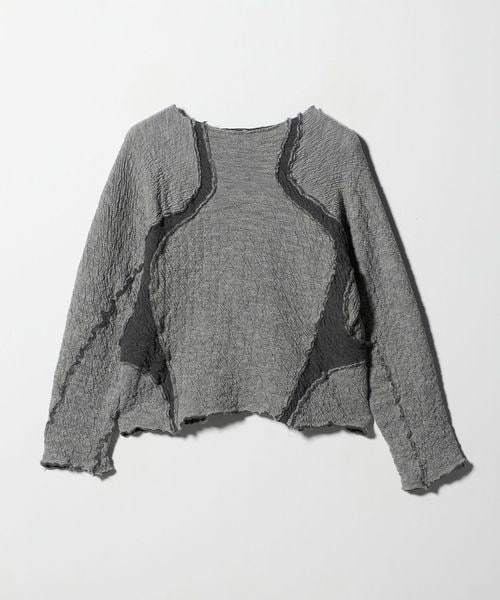 2枚の編地を部分的に糸でつなぎ合わせて1枚のようにしたリバーニットを使用。