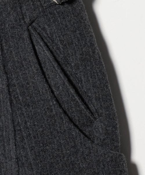 脇と内股のシームを排除し、前後のセンタークリースラインによりシルエットを形成する独自のパターンワークが特徴です。