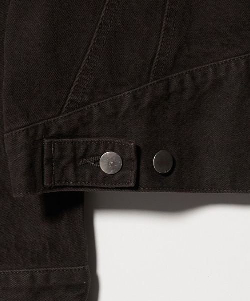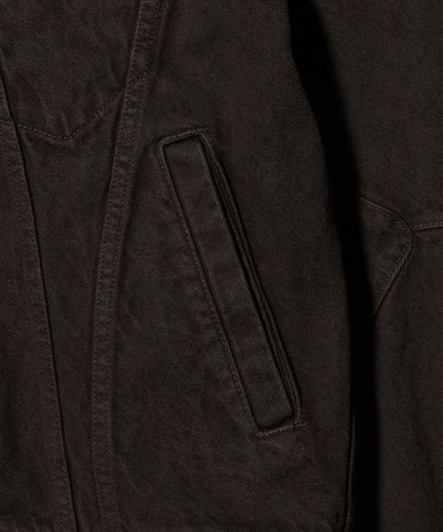 ブラックデニムからストーンバイオでアタリを付けさらにブチーチを加えて下地のブラック感をほど良く残した上にオーバーダイをすることにより、単なる製品染めよりも、表情豊かな深みのある色を表現しています。