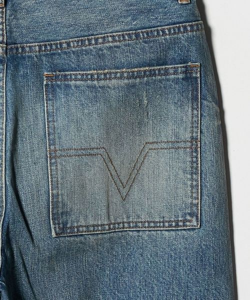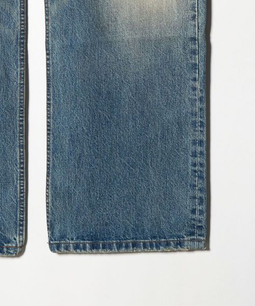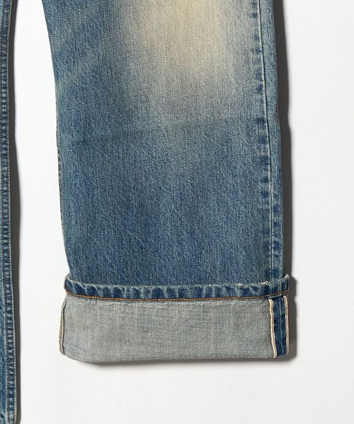色褪せ、膝裏のハチノス、太ももに沿ったヒゲなど長年穿き込んだような加工感が特徴です。