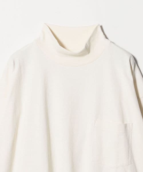 16番単糸コットン天竺を使用したモックネックロングスリーブTシャツ。