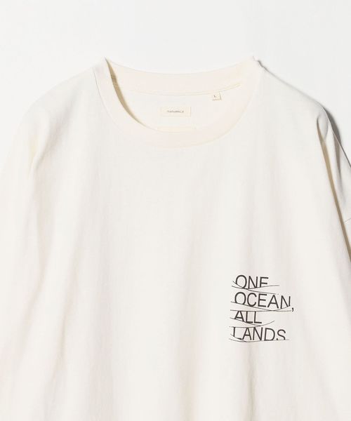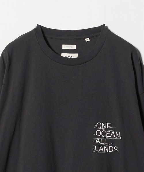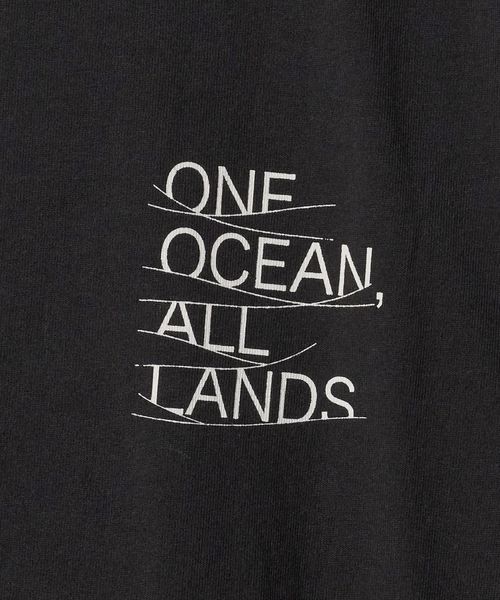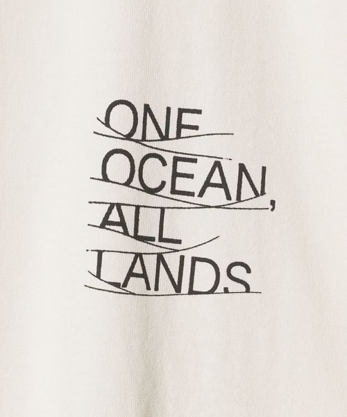 左胸にONE OCEAN, ALL LANDSのプリントをあしらっています。