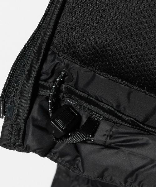 随所にコンシールファスナーポケット、裾にはドローコードを配置。
