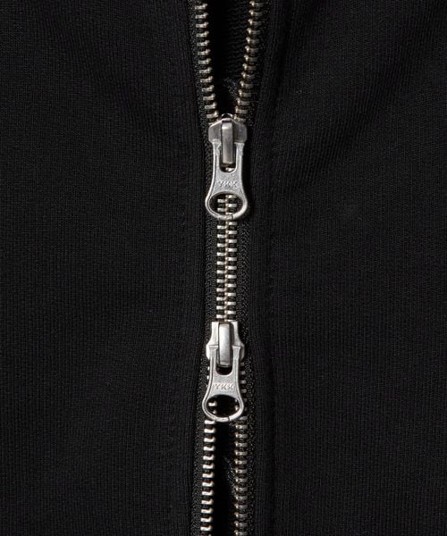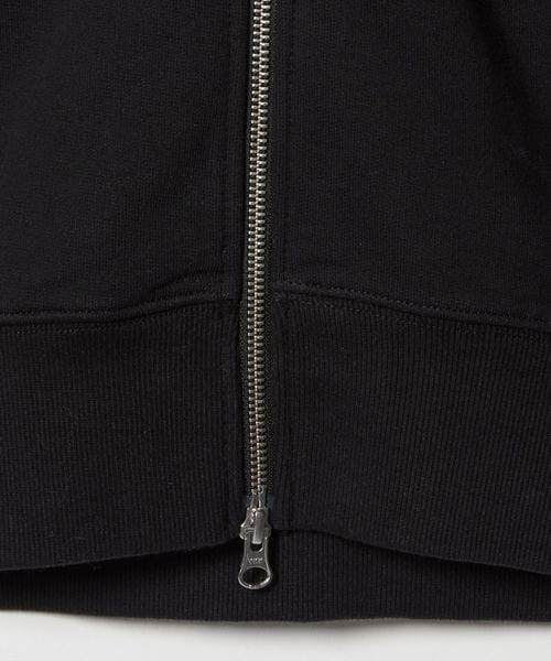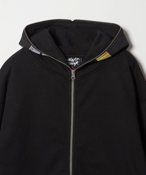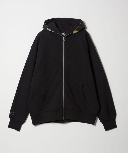 バックにアーティストネーム、右袖口にブランドロゴを刺繍で施したジップアップフーディー。