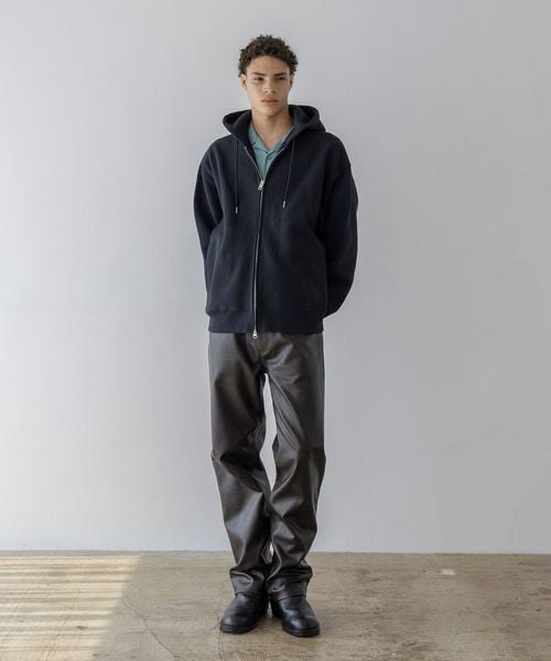 短めに設定したコンパクトな着丈や光沢のあるフロントファスナーがポイント。