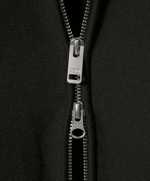 短めに設定したコンパクトな着丈や光沢のあるフロントファスナーがポイント。