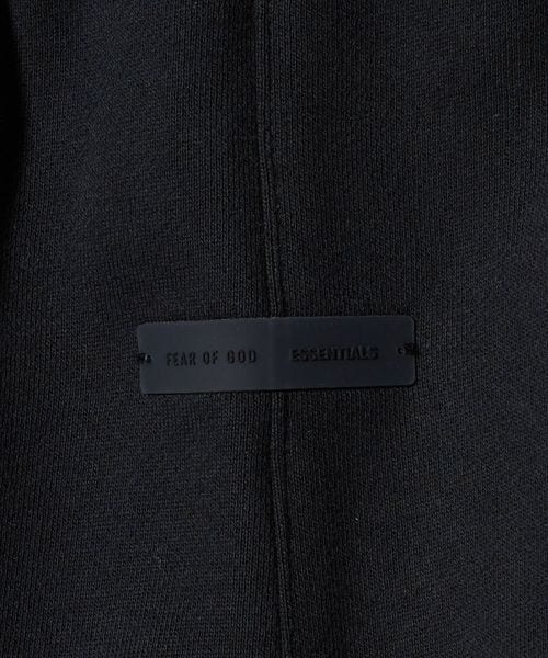 脚には大胆な「ESSENTIALS」ロゴのスクリーンプリント、フロントには「FEAR OF GOD ESSENTIALS」のラバーラベルも施されています。