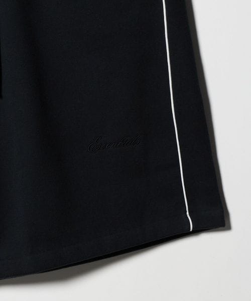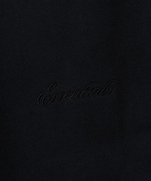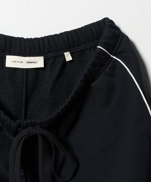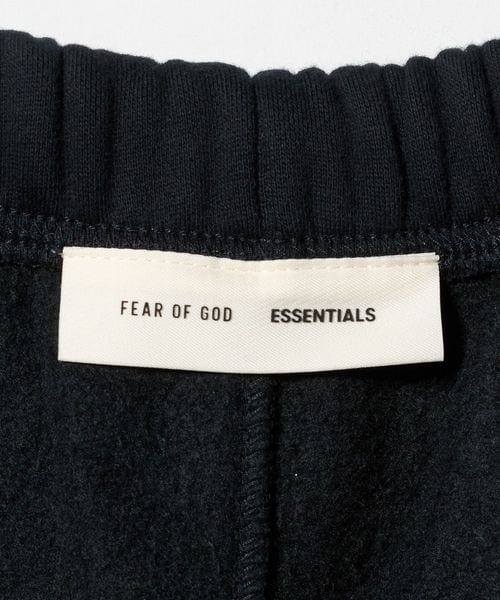 フロントの「FEAR OF GOD ESSENTIALS」のラバーラベルとパイピングディテールが特徴です。