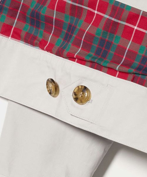ポリエステルコットン素材ラクータクロスに、裏地は伝統的なハウスタータンチェック柄を採用しました。