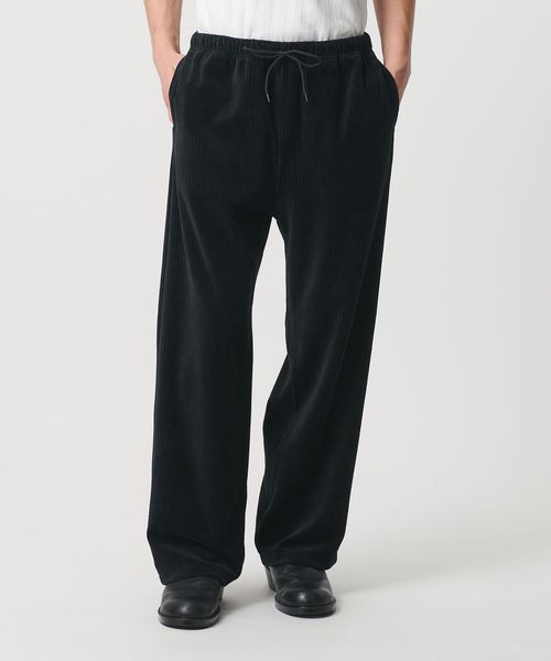 ストライプ上にカットされたコーデュロイ見えのベロア素材を使用したイージーパンツ。