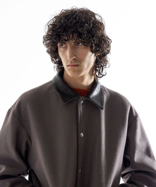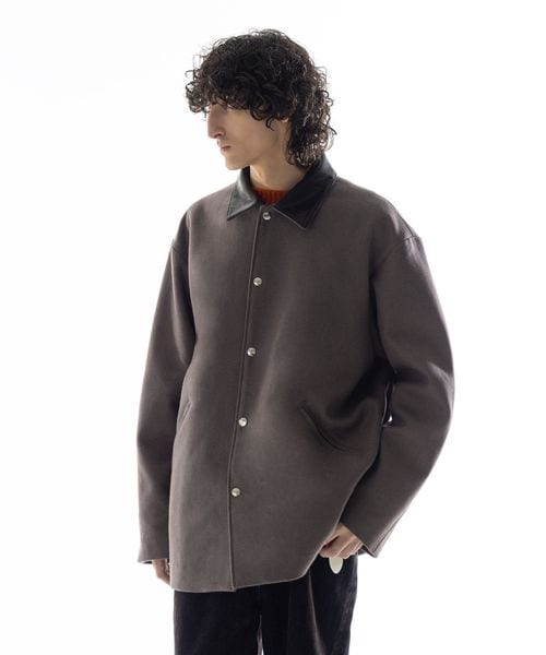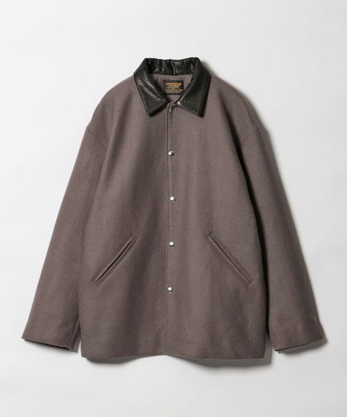 メルトンボディのコーチジャケットをベースに衿を牛革にアレンジした別注モデル。