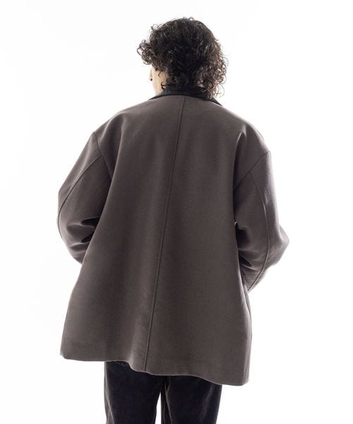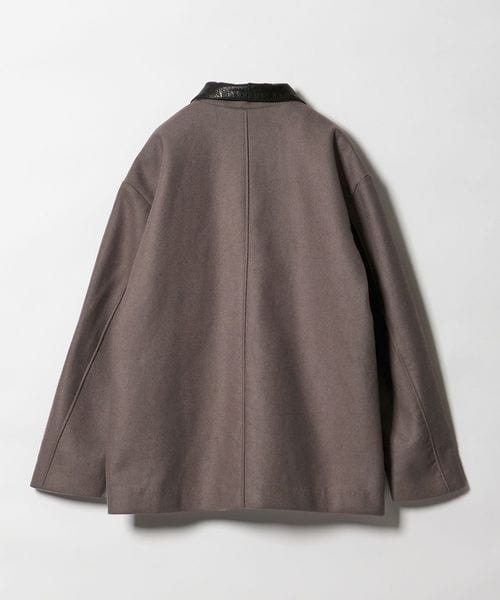 <SKOOKUM × monkey time>メルトン レザーカラー ジャケット グレー