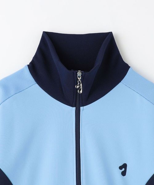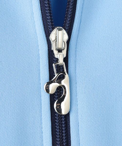 袖には曲線的な切り替えを施し、フロントジップの引手には胸元の刺繍と同様ロゴのオリジナル引手を配し、ブランドのオリジナリティ溢れる一着に仕上げています。