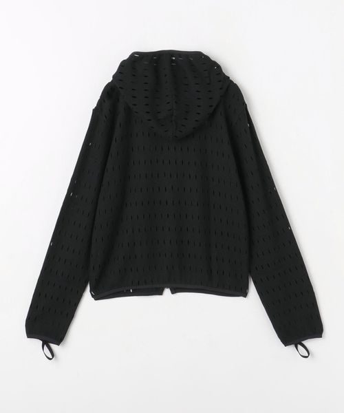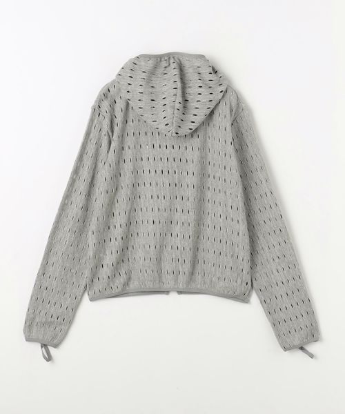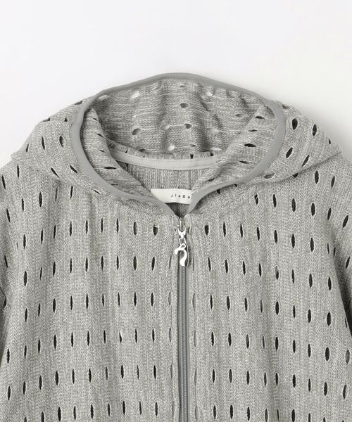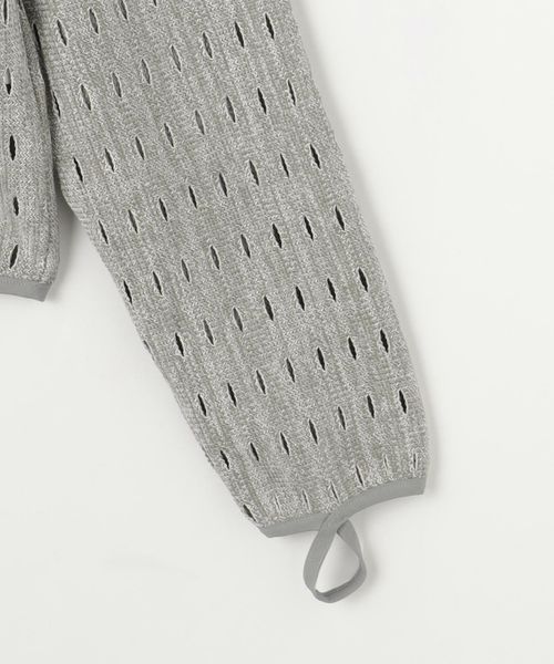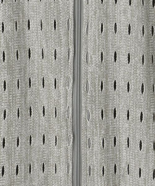生地には希少な経編機で編み立て、様々な糸を複雑にミックスして編むことで、独特な杢調柄を表現し、編みの組織で作られたホール部分が特徴的なラッセル生地を使用しています。