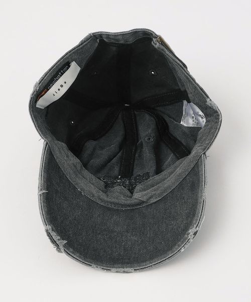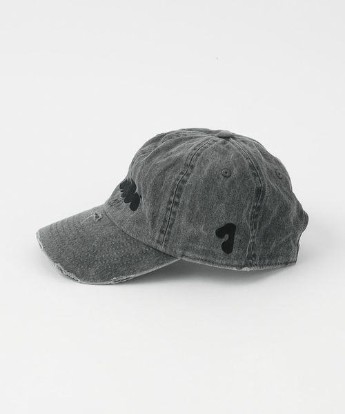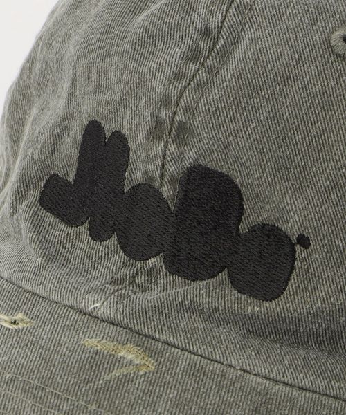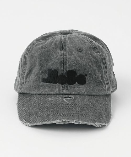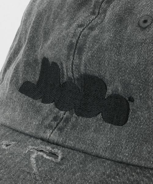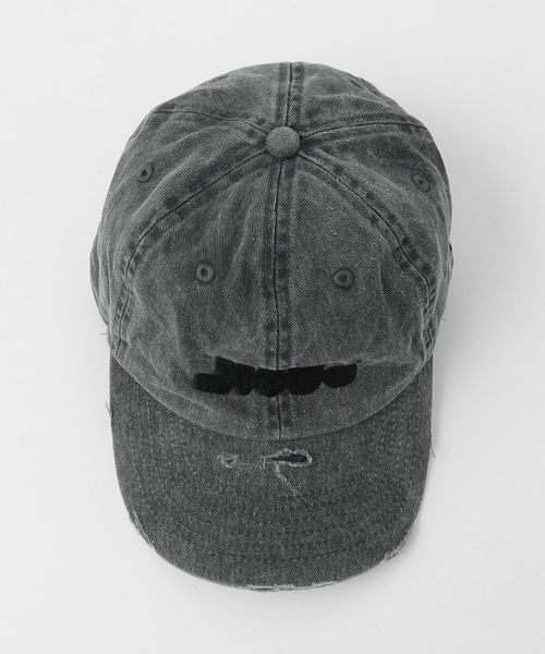 ブランドロゴ刺繍を配したダメージキャップ。