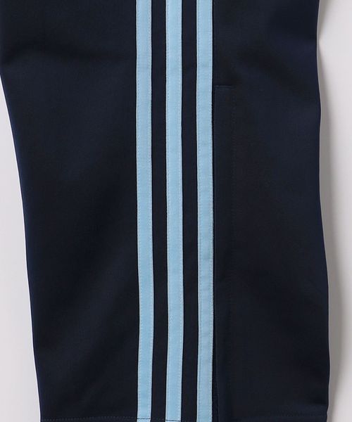 アディダスのアイコニックなスリーストライプスを両サイドに、トレフォイルロゴを片方のサイドにあしらっています。