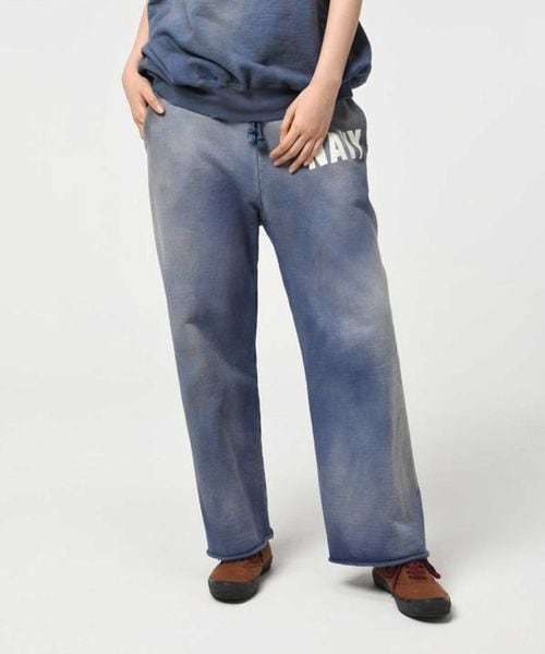 ブランド独自のスウェットパンツの形状に加え、切りっぱなしの裾やリバーシブル仕様、独自のプリント技術が特徴です。