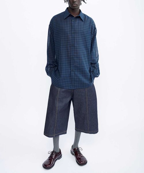 カーブしたマチ付きの裾が特徴のオーバーサイズシャツ。