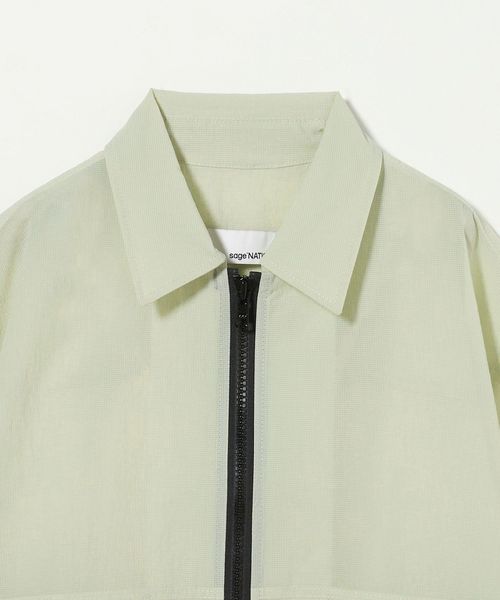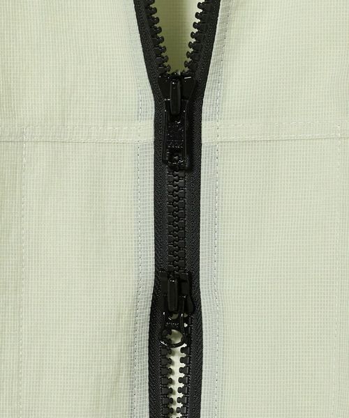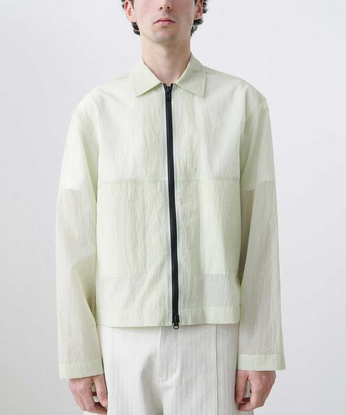 テクスチャード加工を施した透け感のあるリップストップメッシュ生地を使用したジップアップジャケット。