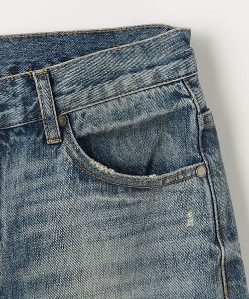 色褪せ、膝裏のハチノス、太ももに沿ったヒゲなど長年穿き込んだような加工感が特徴です。