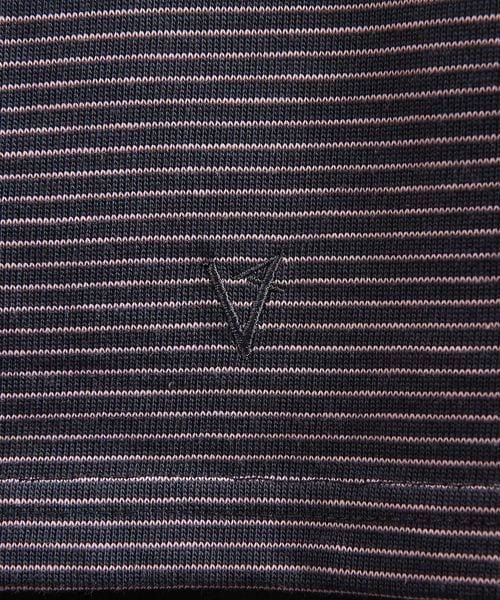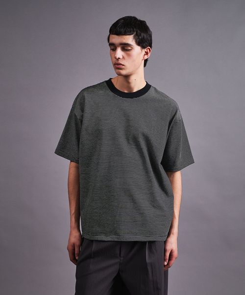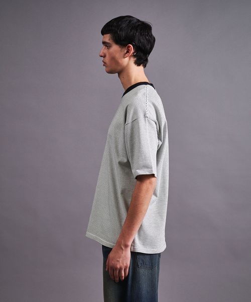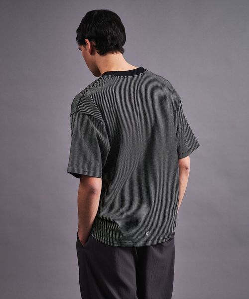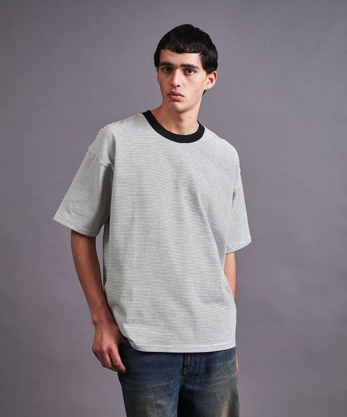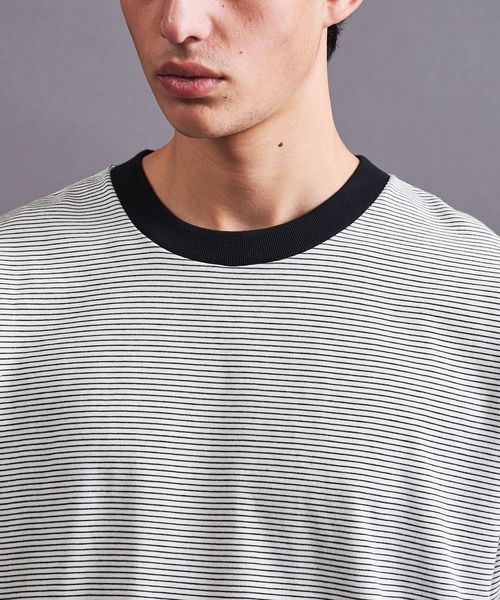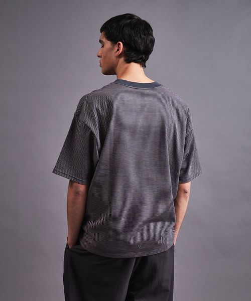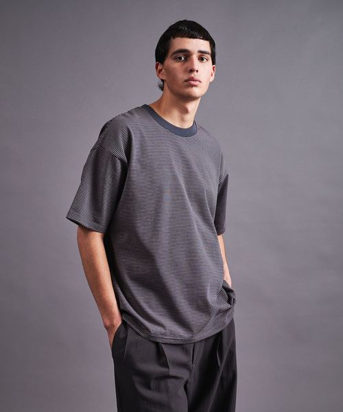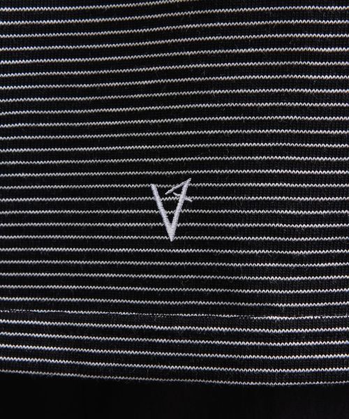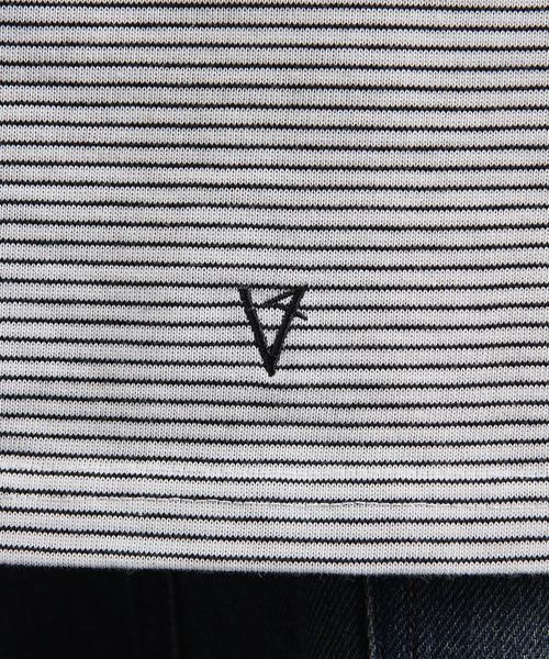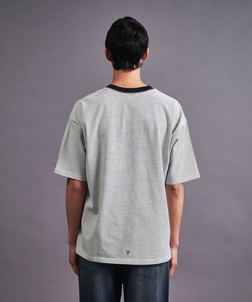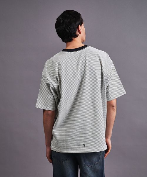 <VATANLOOP>のブランドロゴが後ろ裾にさりげなく刺繍されたボーダーTシャツ。