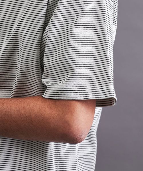 ボーダーのピッチを細くすることで程よくカジュアルな印象をおさえて着回ししやすく仕上げています。