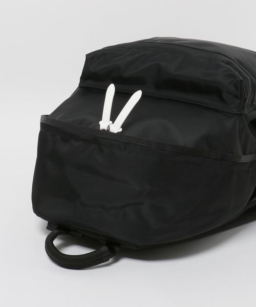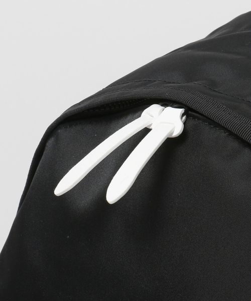 シャチを連想させる滑らかで光沢のあるナイロンの質感と、ブラックを基調としたボディに、ホワイトのファスナー引き手、ナイロンテープを配したモノトーンのカラーリングが特徴のSHATIシリーズのデイパック。