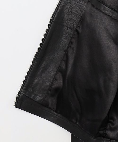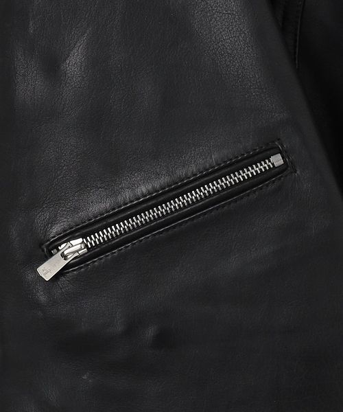 傷加工を施した牛革を使用した6ジップレザージャケット。