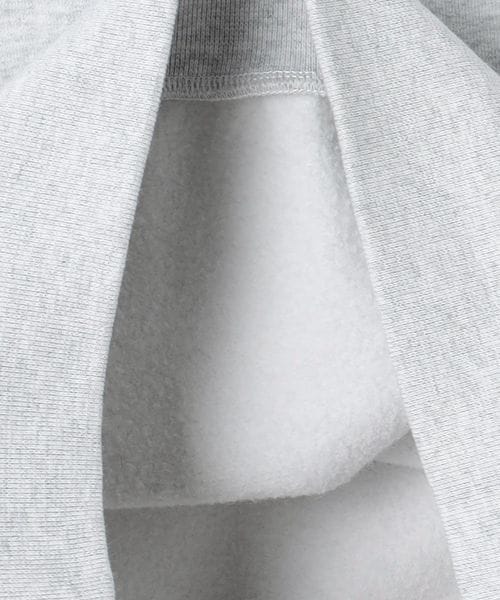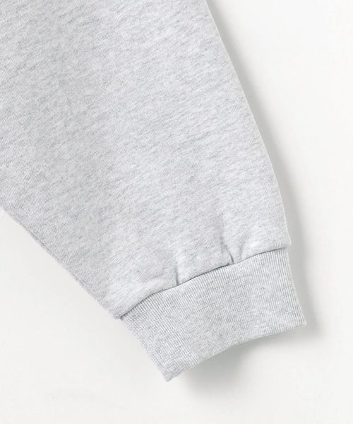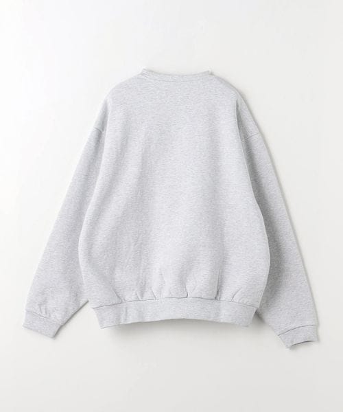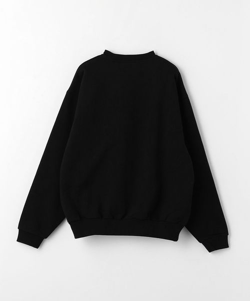 サテンステッチ刺繍のロゴをフロントにあしらったクルーネックスウェット。