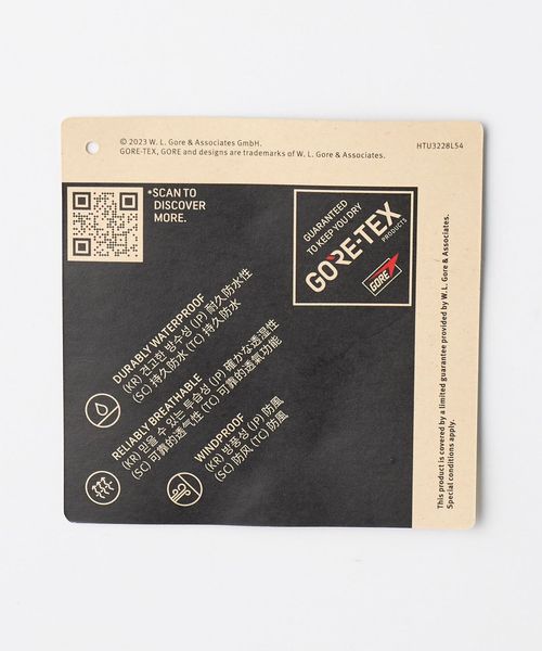 非フッ素の防水透湿メンブレンとはっ水加工による2層のePE GORE-TEX fabricsを採用し、環境問題に配慮しています。