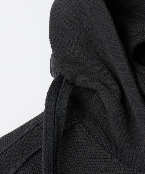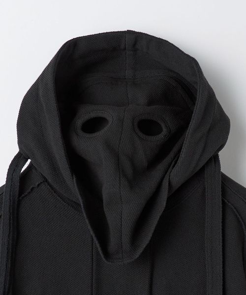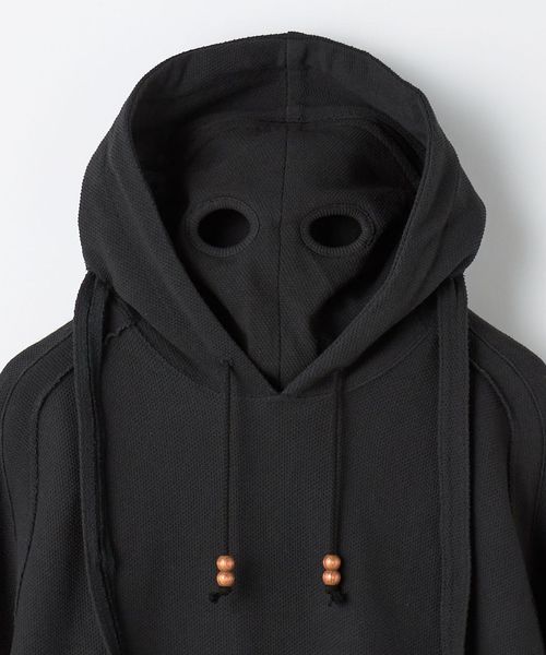 フードに取り外し可能な目出しマスクパーツを内蔵したプルオーバーフーディー。