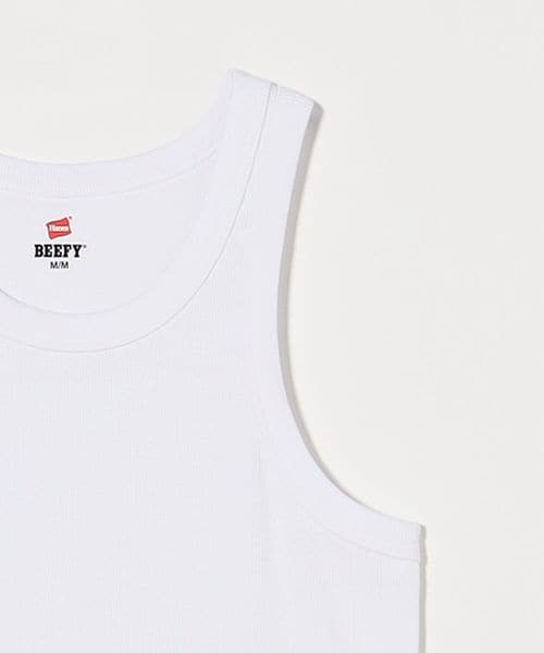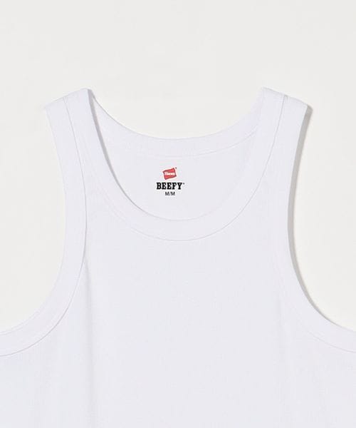 ワッフル地のような心地よい肌ざわりを持つ、コットンベースの素材を用いたタンクトップ。