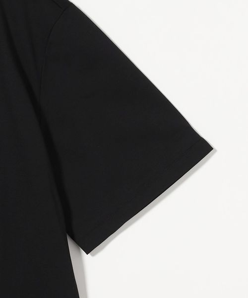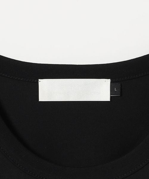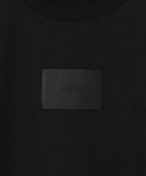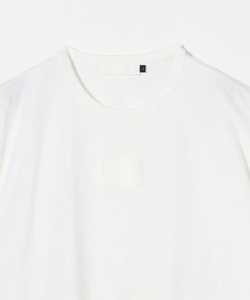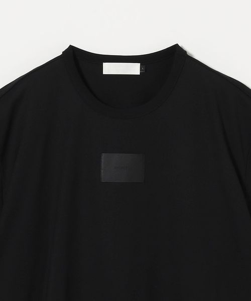 胸元のブランドネームをあしらったラベルがアクセントのTシャツ。