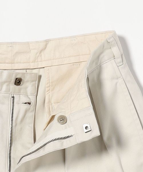 60年代のU.S. Air force /オフィサートラウザーズをデザインベースにしたワイドテーパードカットの2タックチノショーツ。