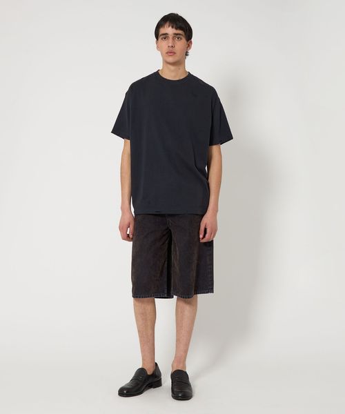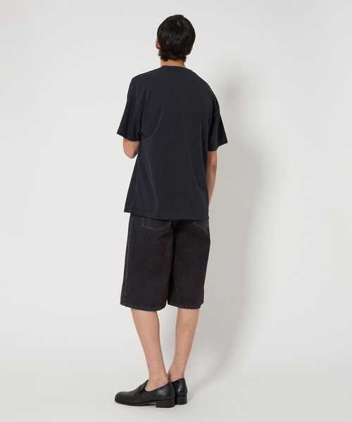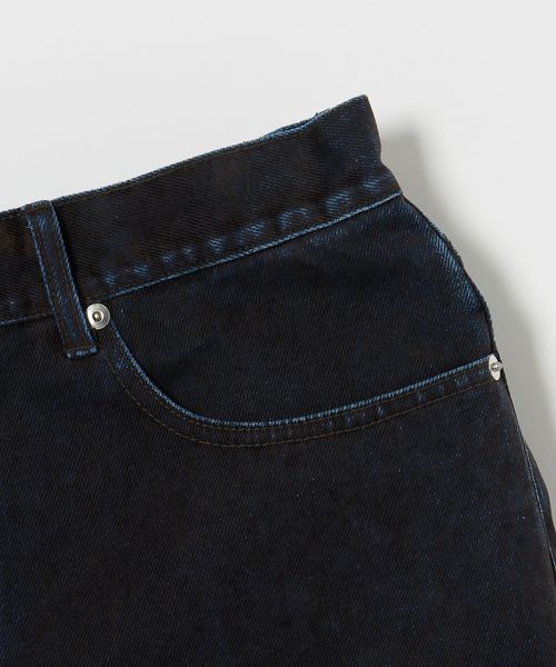 着用を繰り返すことで部分的にフロッキーが剥がれ、独特な風合いの生地に仕上がります。