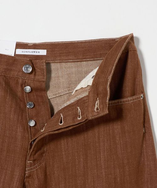 捻ったようなステッチ使いが個性的なデニムパンツ。
