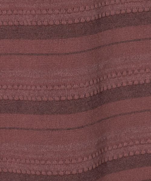 無地部分はコットン100%、杢部分にポリエステル/コットン糸を使用することで、製品染めした際の染まる色差でマルチストライプ柄を表現。