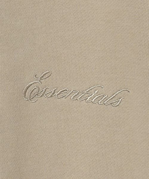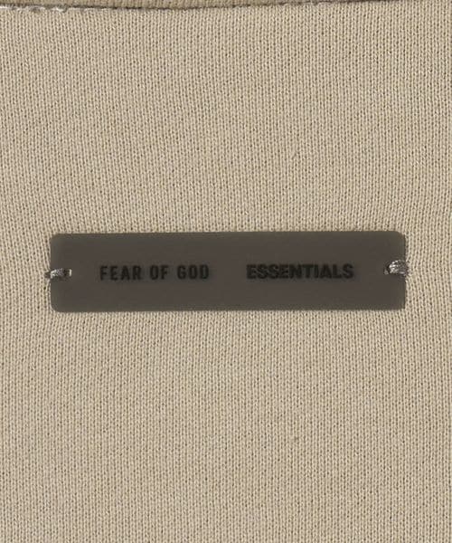 左胸には「Essentials」の刺繍ロゴ、後ろ襟には「FEAR OF GOD ESSENTIALS」のラバーラベルがあしらわれています。