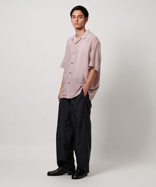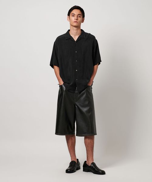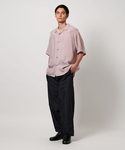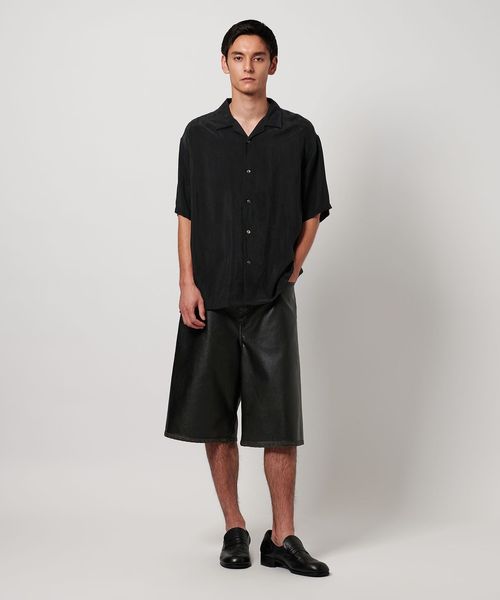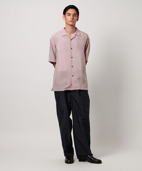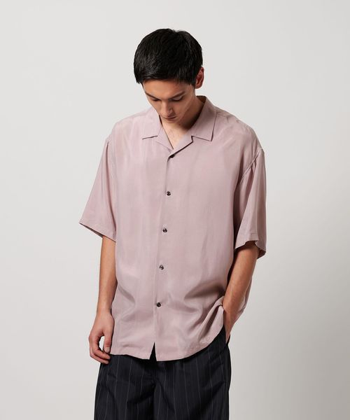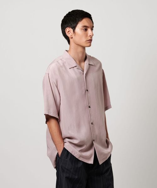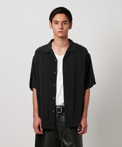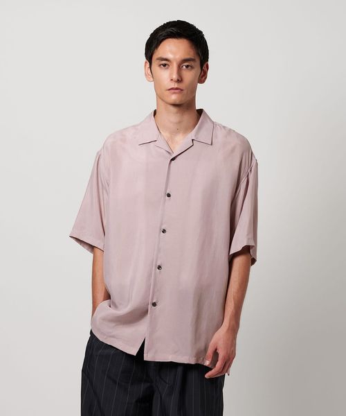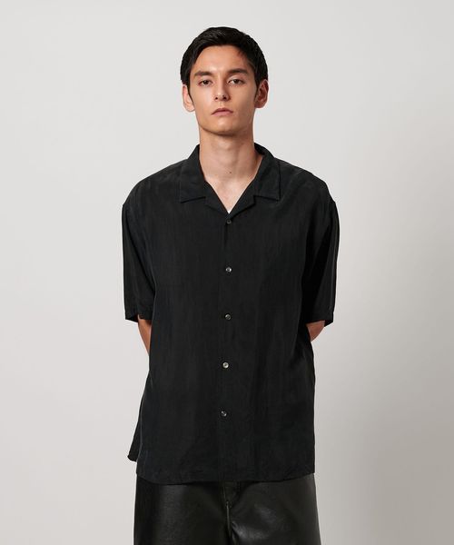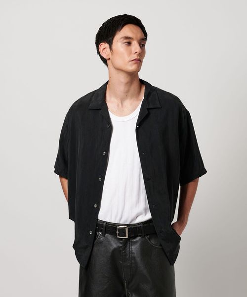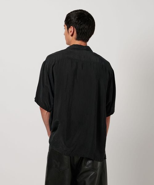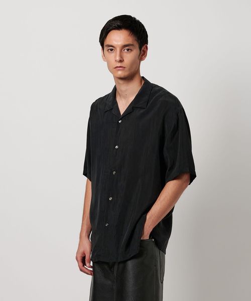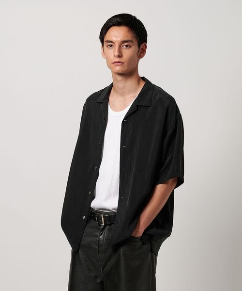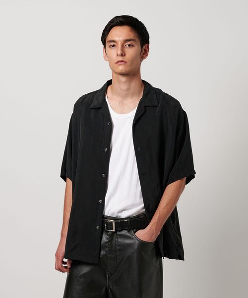 特殊加工による表面の退色感が特徴的なオープンカラーシャツ。