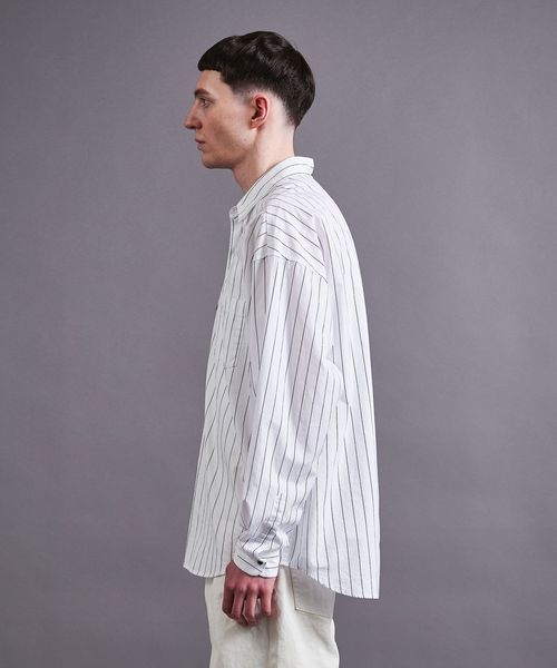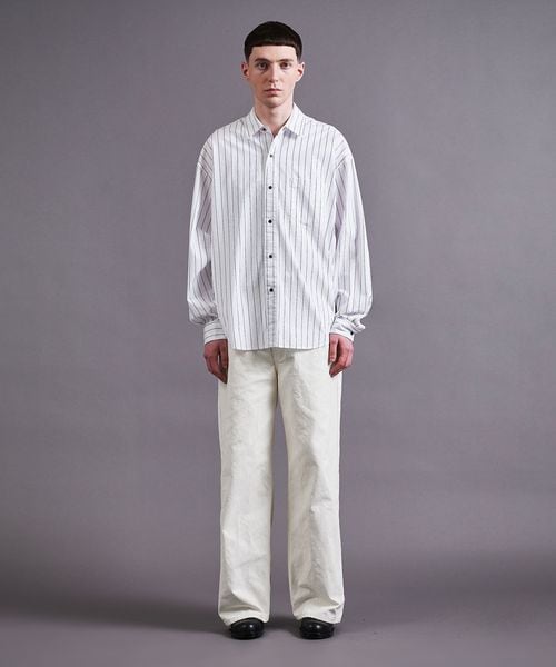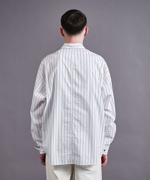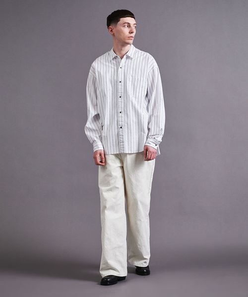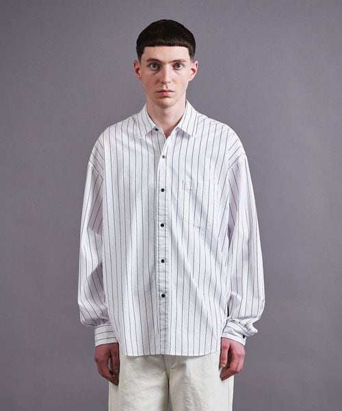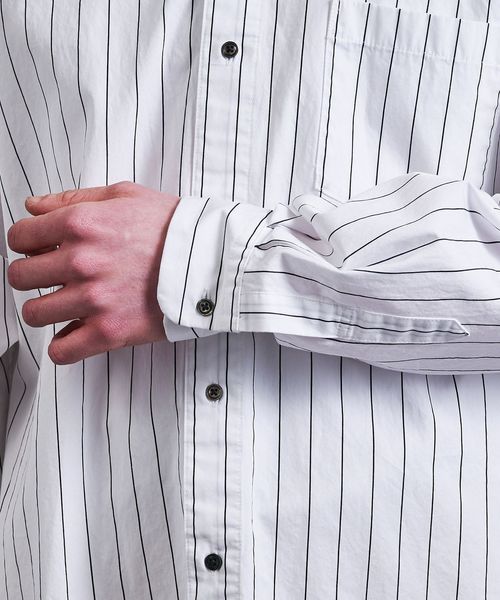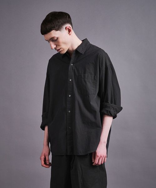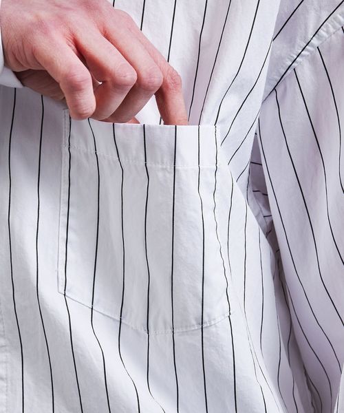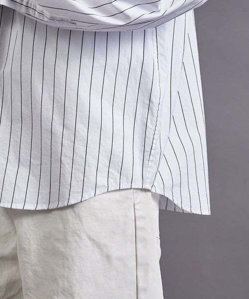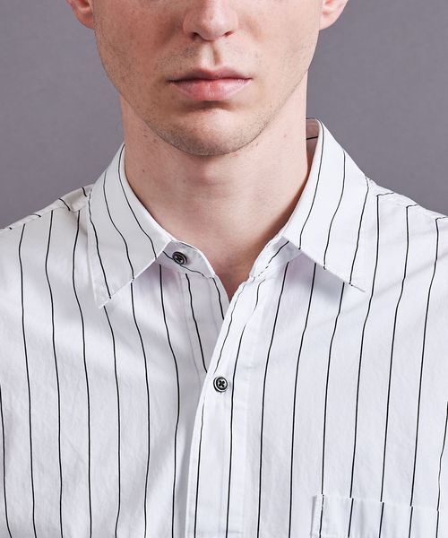 製品染めによるナチュラルな風合いとストライプ柄が今シーズンのムードにマッチするシャツ。